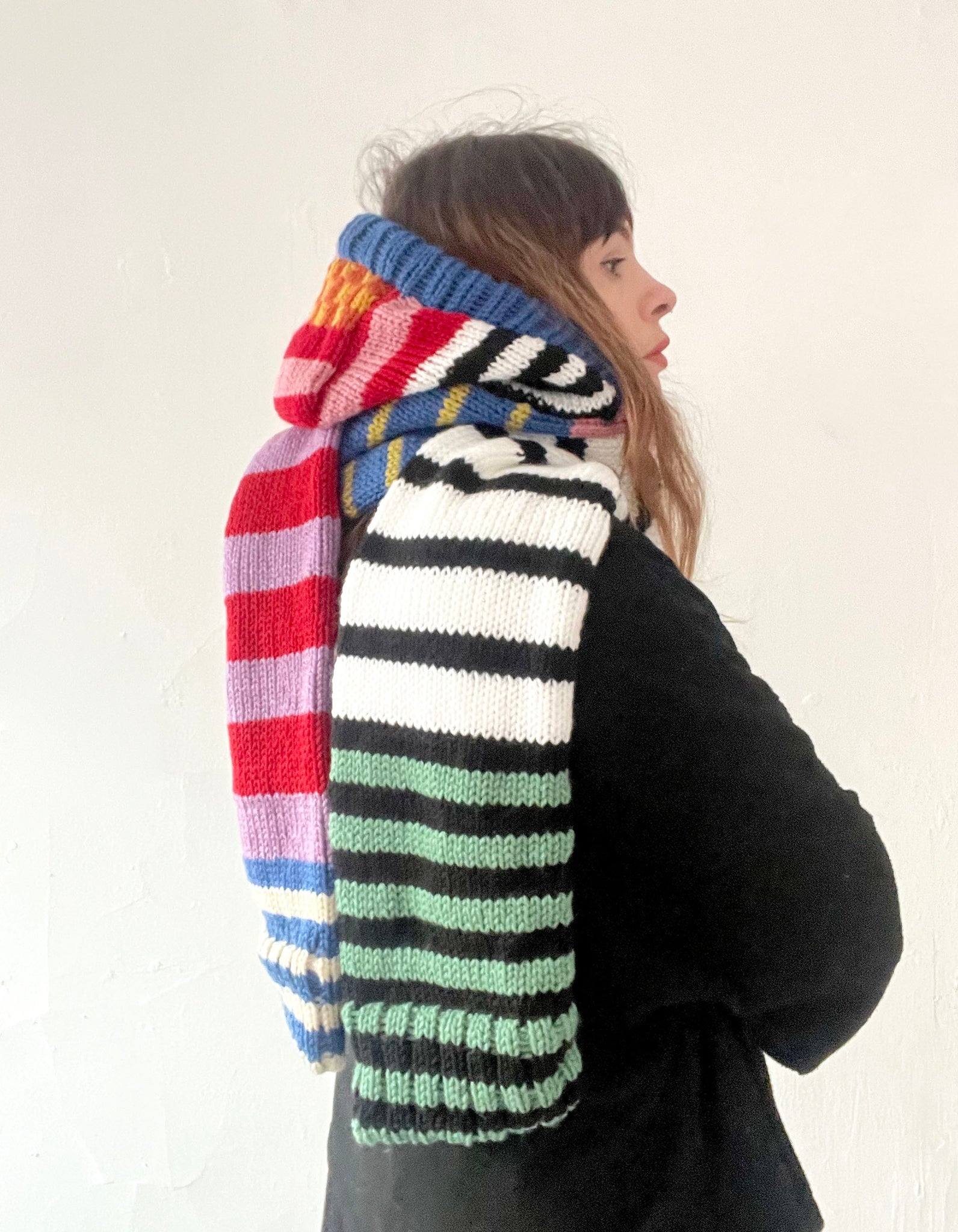 ~ I'm just so obsessed with these scarf hood hybrids! Looks cute worn hood up or down! This one is special bc it's made from chunky wooly blend yarn and is extra extra cosy! This one is slightly different as it has a shaped hood instead of the normal square one :)